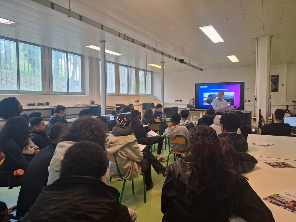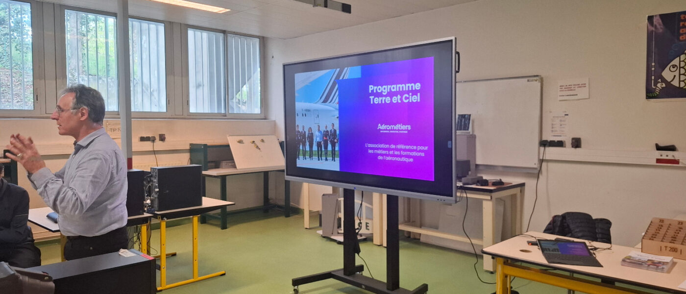 Dans le cadre du programme Terre & Ciel, l’association Aérométiers est intervenue dans une conférence auprès de nos élèves de Terminale STI2D. Cette conférence a permis aux élèves de découvrir les métiers de l’aérien, de l’aéronautique et du spatial. Les élèves ont également pu échanger avec le conférencier pour répondre à leurs questions et réfléchir à leur projet d’orientation.